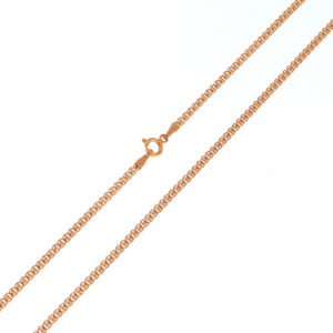 Kaunis roosast kullast kaelakett pikkusega 45 cm. Keti esiosa on laiusega 6 mm, mis läheb sujuvalt üle 2,1 mm laiuseks ketiks.