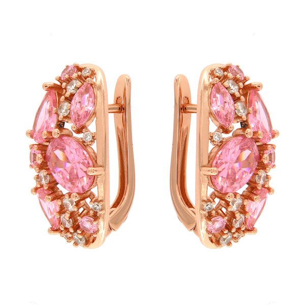 Väga efektsed kullatud hõbekõrvarõngad roosade ja valgete tsirkoonidega. Kõrvarõngastel on inglise kinnitus.