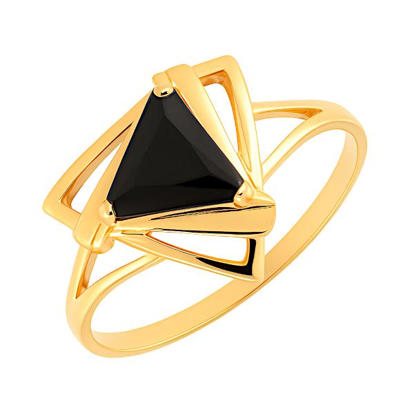 Kaunis musta kolmnurkse tsirkooniga kaunistatud kuldsõrmus.