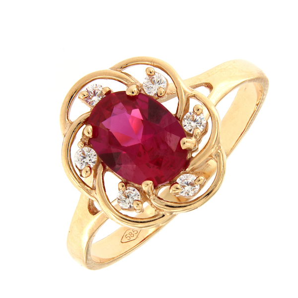 Kaunis punase ja valgete tsirkoonidega kaunistatud kuldsõrmus.