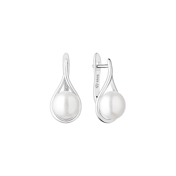 Kaunid magevee pärliga hõbekõrvarõngad, mis on mugava inglise kinnitusega.