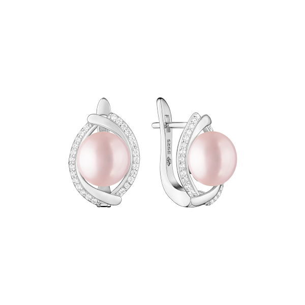 Kaunid helelillade magevee pärlite ja tsirkoonidega hõbekõrvarõngad, mis on mugava inglise lukuga.