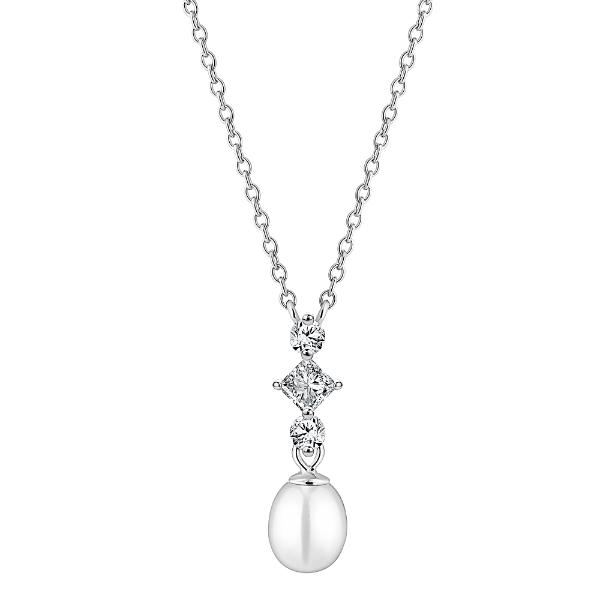 Elegantne magevee pärli ja tsirkoonidega hõbedast kaelakett. Keti pikkus on reguleeritav.