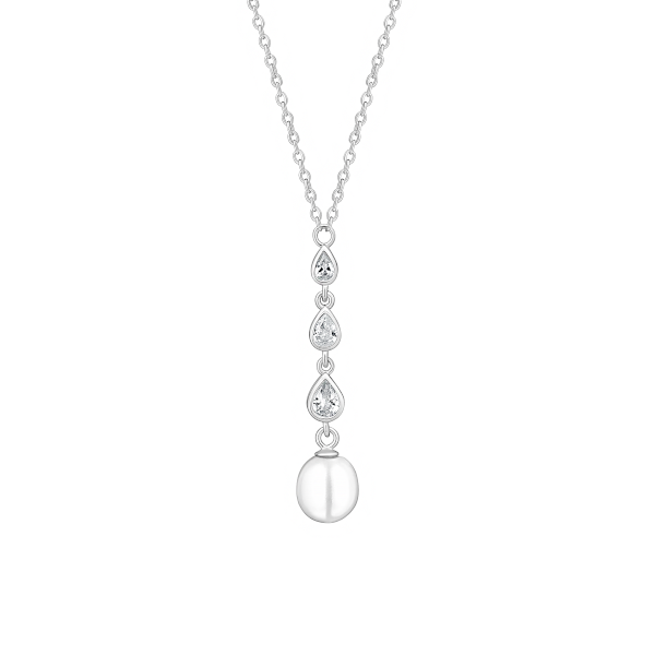 Elegantne magevee pärli ja tsirkoonidega hõbedast kaelakett. Keti pikkus on reguleeritav.