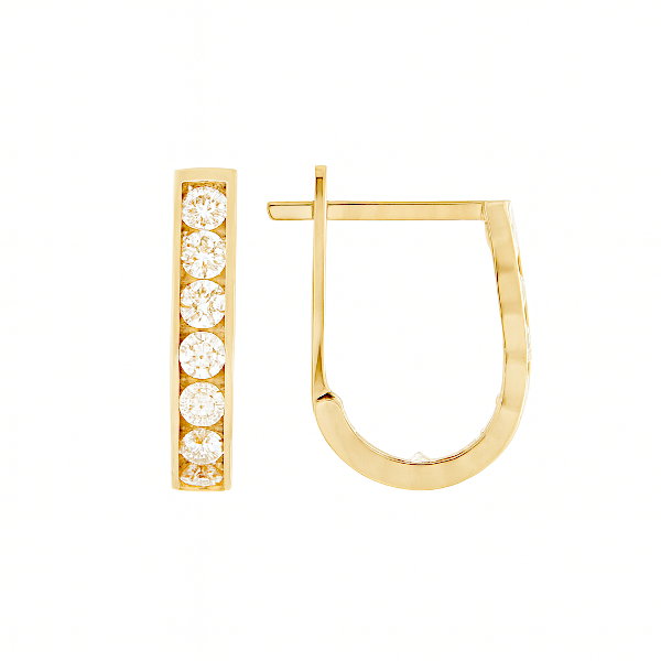 Säravate valgete tsirkoonidega inglise lukuga kuldkõrvarõngad, mis sobivad igapäevaseks kandmiseks.