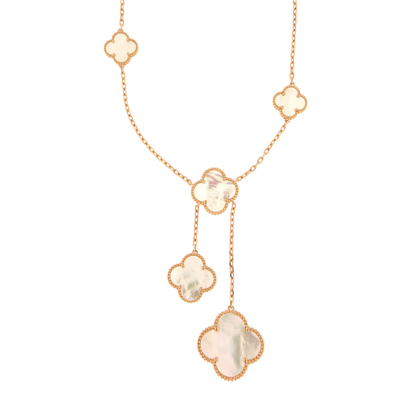 Eriline kullatud hõbedast lillemotiividega kaelaehe, mis on kaunistatud pärlmutriga. Kaelaketi pikkus on 45 cm ja rippuva ripatsiosa pikkus on 7,5 cm.