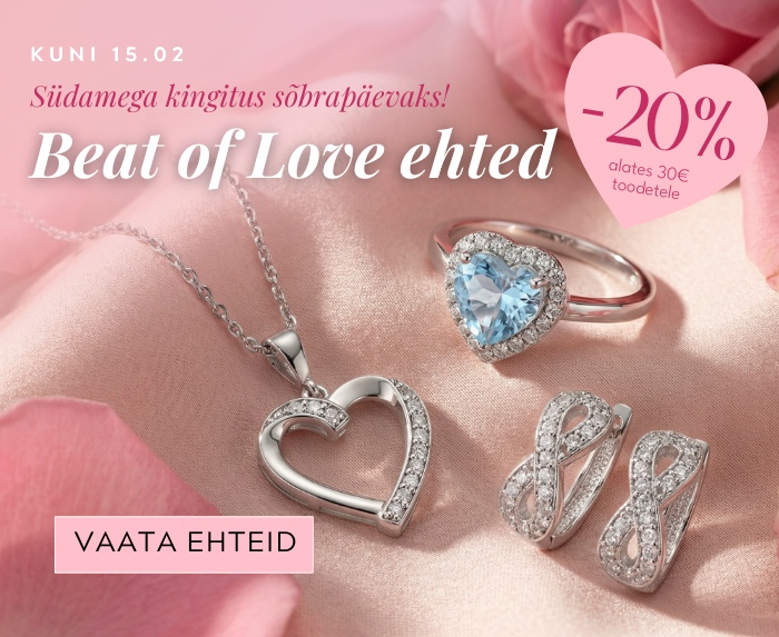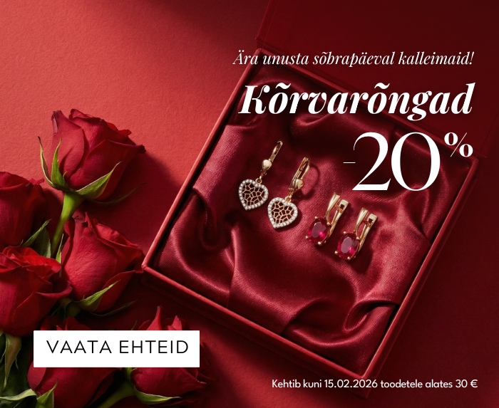Tutvu ehete valikutega meie sõbrapäeva kingituste kategoorias. Valentinipäeva eel on valik ehteid lausa 20% soodsamad (pakkumine kehtib alates 30 € toodetele). Leia oma naisele, tüdruksõbrale või kaaslasele sobiv kingitus ning väljenda oma tundeid kinkides ehteid. Vaata kõiki sõbrapäeva kingitusi.